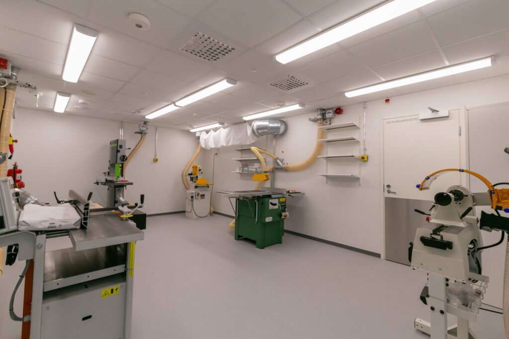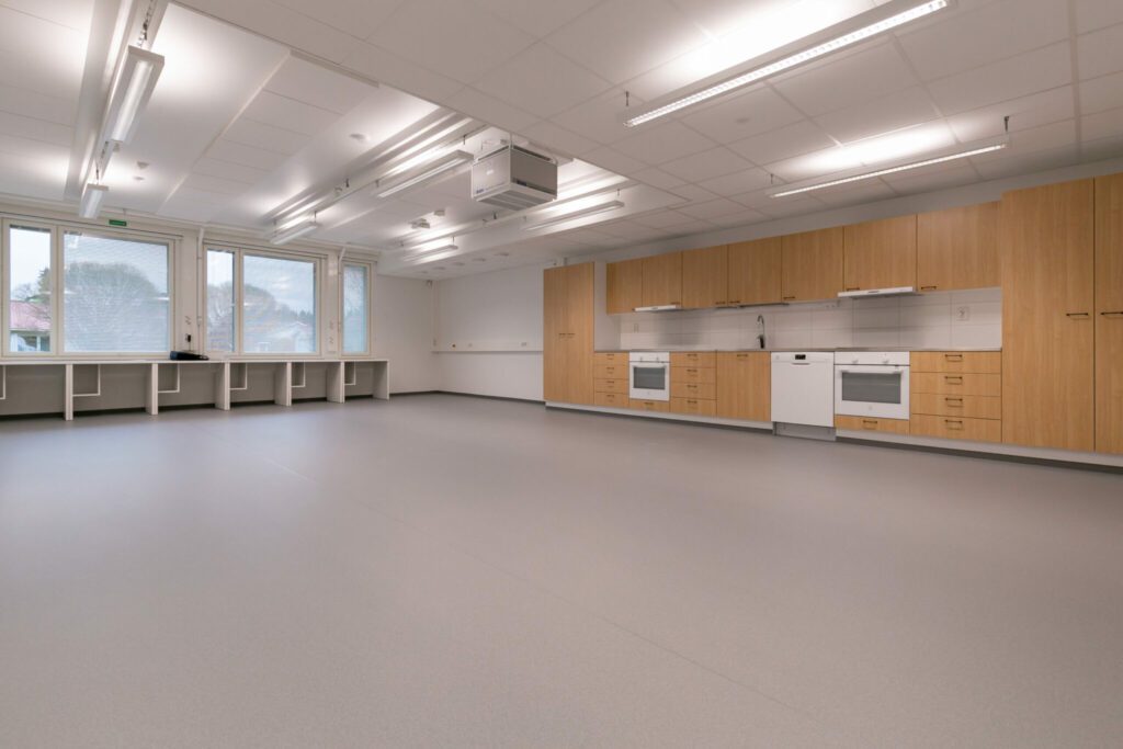 Koulu on rakennettu kokonaan säältäsuojaavan teltan sisällä. Olemme suunnitelleet kohteen vastuullisesti ympäristöä ja ilmastoa kunnioittaen. Järkevän tilasuunnittelun lisäksi olemme minimoineet tuotesidonnaiset ilmastopäästöt ja energiankäytön hiilijalanjäljen. Puurakentaminen, maalämpö, aurinkoenergiavoimala, energiatehokkaat ikkunat ja ovet ovat esimerkkejä vastuullisista ratkaisuistamme. Rakennuksen energiatehokkuusluokka on A.